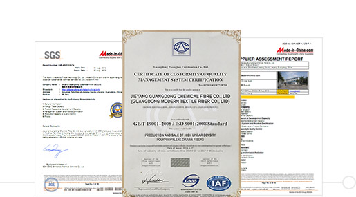 We also actively carry out industry-university-research cooperation with well-known domestic universities. In the project of "Research on Key Technologies and Equipment of High-strength Industrial Polypropylene Fiber", we won the "Second Prize of Shanghai Science and Technology Progress" issued by the Shanghai Municipal Government. In 2006, we successfully developed "high modulus and low shrinkage polypropylene industrial filament" and was recognized as "2008 National High-tech Product". Up to now, we have 12 authorized invention patents and 4 international PCT invention patents. In 2019, we led the drafting of three industry standards of China Chemical Fiber Industry Association, "Polypropylene Industrial Filament Yarn", "Coarse Denier Polypropylene Full-Drawing Yarn" and "Colored Polypropylene Elastic Yarn", laying a solid foundation for the development of the national polypropylene industry.