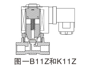 该阀代号Z系列,依据直接截止泄压设计,阀分为常闭型和常开型两种。原理:常闭型(常态呈关闭状态),当线圈通电时产生电磁力,使动铁芯克服弹簀力同静铁芯吸合直接开启阀,介质通过;当线圈断电时,电磁力消失,动铁芯在弹簧力的作用下复位,直接关闭阀口,介质不通。直拉结构,动作可靠,在零压差和微真空下正常工作。常开型工作原理正好相反。如图一: B11Z和11Z系列电磁阀